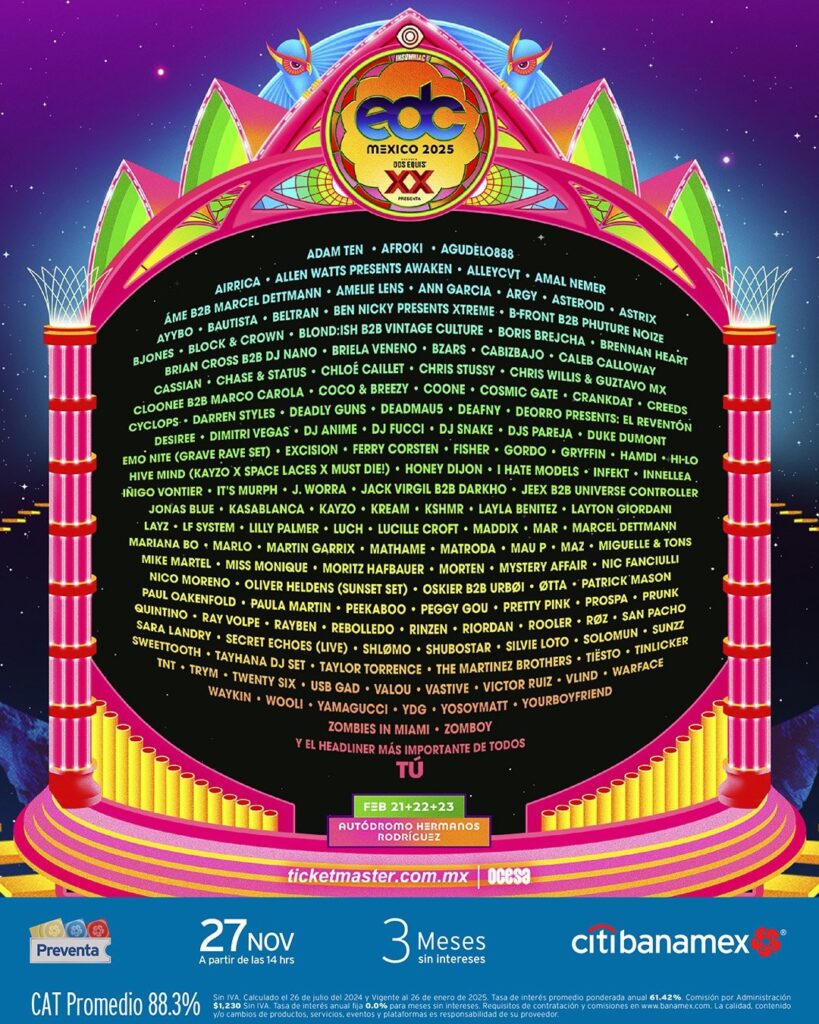 ¡La espera ha terminado! El Electric Daisy Carnival (EDC) México 2025 acaba de revelar su increíble lineup. Con una mezcla de gigantes internacionales y talentos locales, este festival promete ser uno de los más épicos hasta la fecha. Si eres un amante de la música electrónica, ¡prepárate para vivir una experiencia inolvidable! AQUÍ TODOS SON BIENVENIDOS.